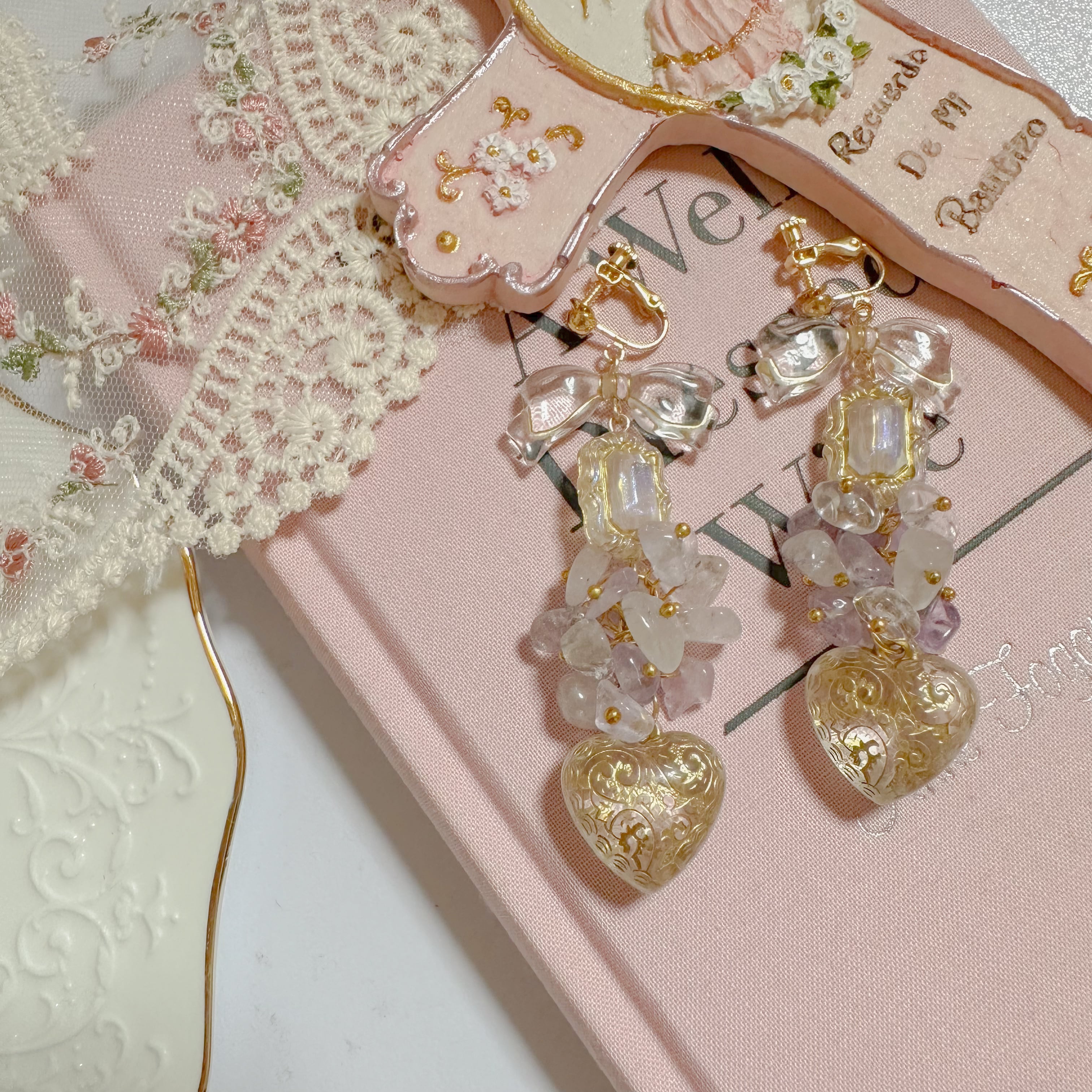 心の安らぎ/浄化 アメジストをふんだんに使った耳飾り。 キラキラ揺れて、視覚からも安らぎを与えてくれます・.。*・.。*