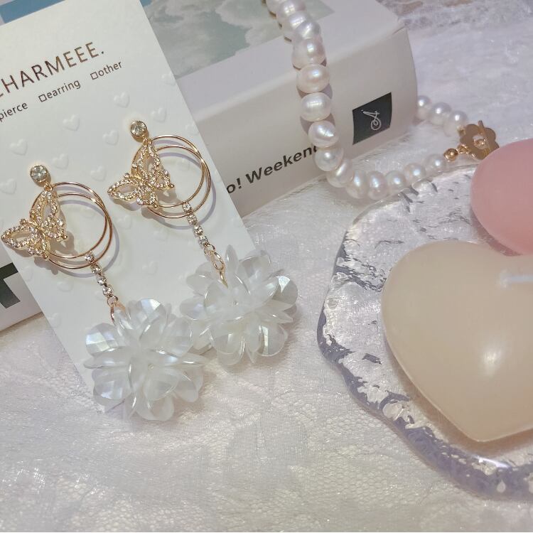お花と蝶が揺れる耳飾り♡